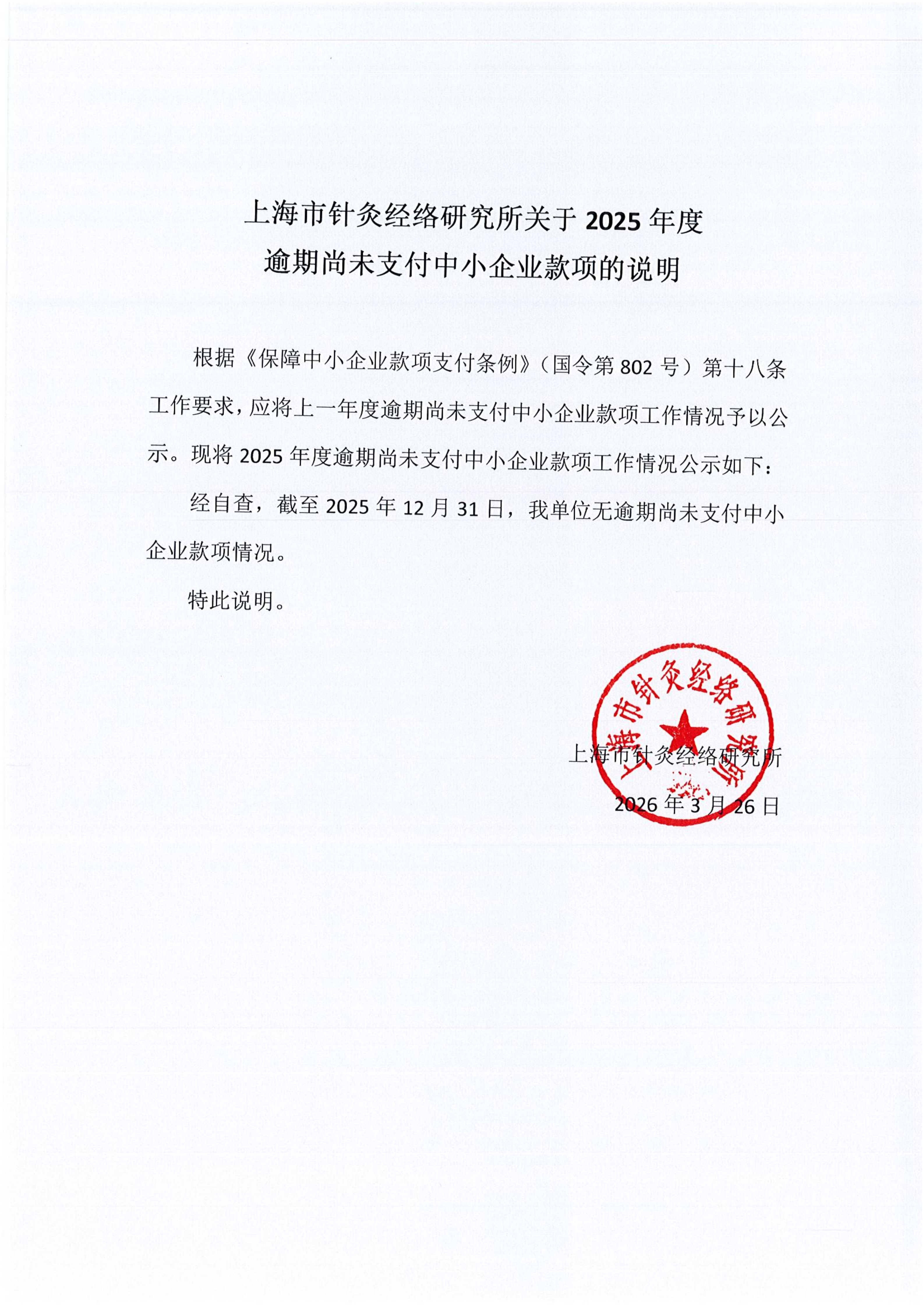 上海市针灸经络研究所关于2025年度逾期尚未支付中小企业款项的说明